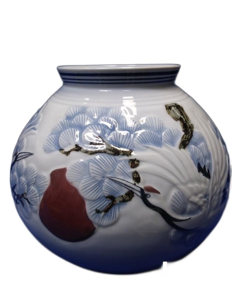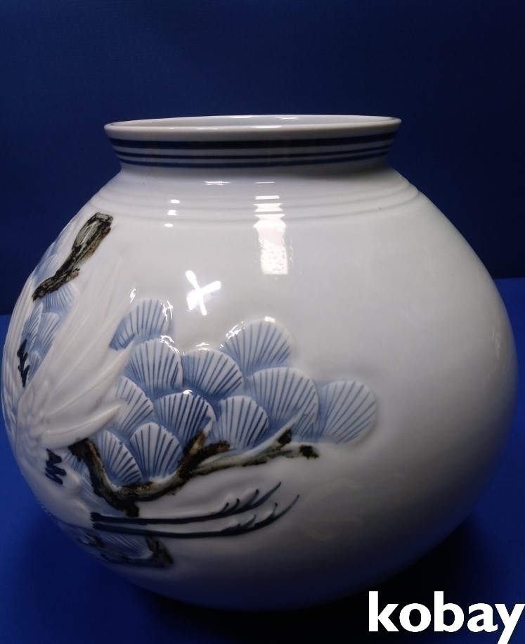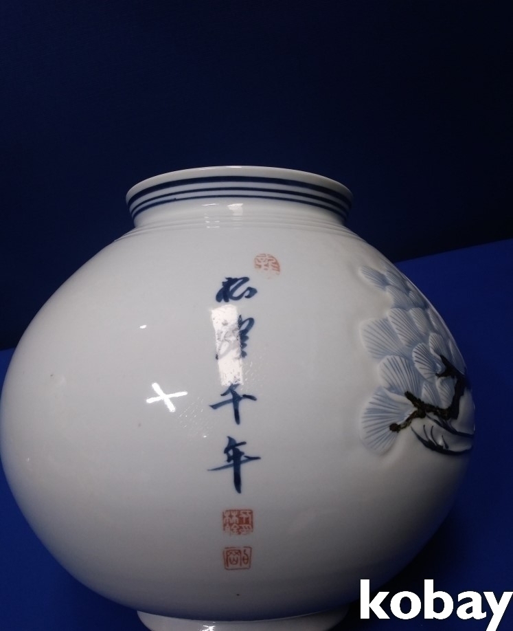 철화로 해 아래 소나무와 학이 아름답게 표현된 도자기 입니다.