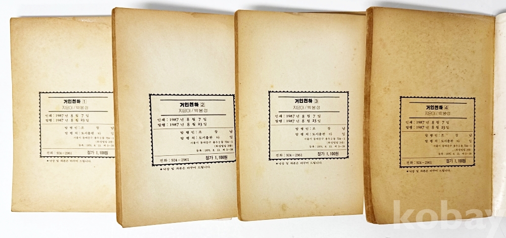 상품명 | 박봉성 / 거인천하 (1) (2) (3) (4) 완결 / 1987년 | ||