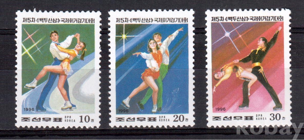 (동계스포츠) 북한 1996.2.17 제5차 백두산상 국제휘거경기대회 3완 MNH