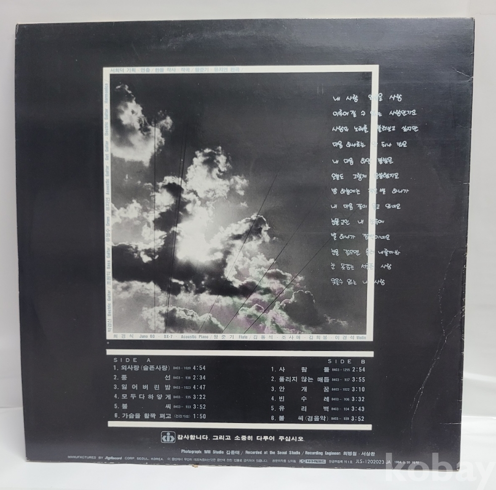 | 자켓상태 | EX : 약간의 마모, 모서리 찢김 존재 | 음반상태 | EX : 재생에 영향 없는 가벼운 기스 존재 | 발매정보 | 초반 | 가사지여부 | 유 |