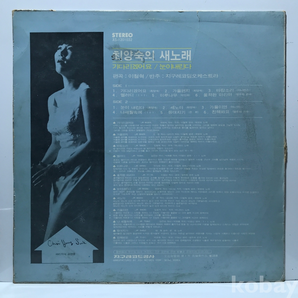 | 자켓상태 | EX : 약간의 마모, 모서리 찢김 존재 | 음반상태 | EX : 재생에 영향 없는 가벼운 기스 존재 | 발매정보 | 알수없음 | 가사지여부 | 무 |