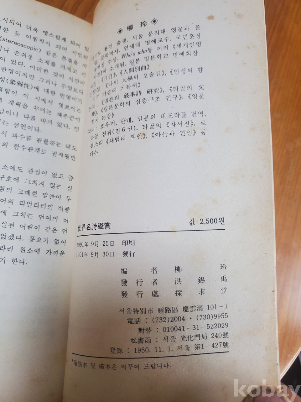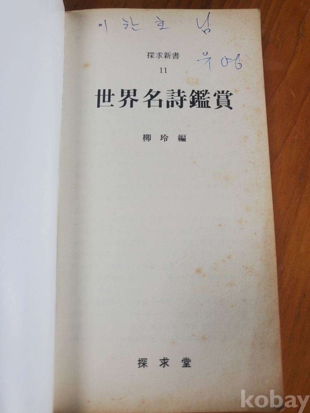 1. 세계명시감상, 유영 편, 탐구당, 1981년, 318쪽, 저자 서명본, 상태 상, 사진 참조