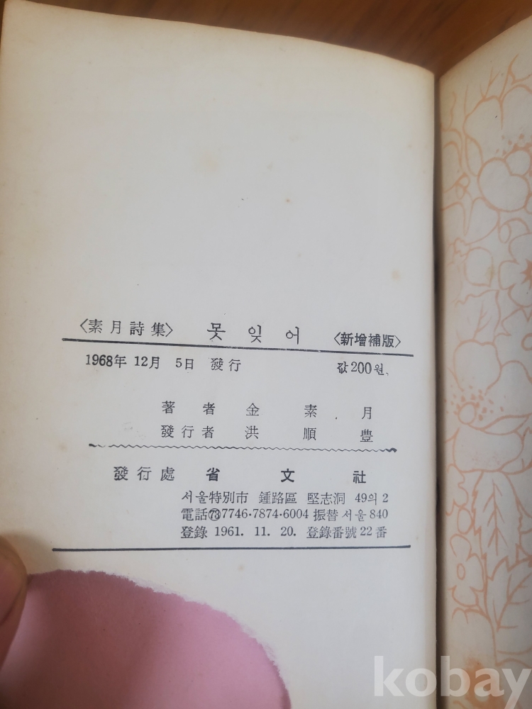 1. 못잊어, 김소월, 성문사, 1968년, 160쪽, 사진 참조