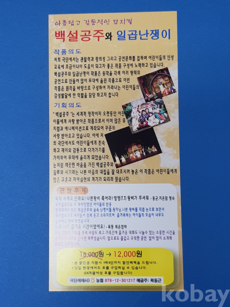 **** 백설공주와 일곱난쟁이 할인권/호평체육문화센타 2011.8.20