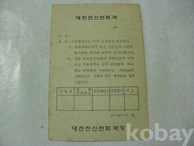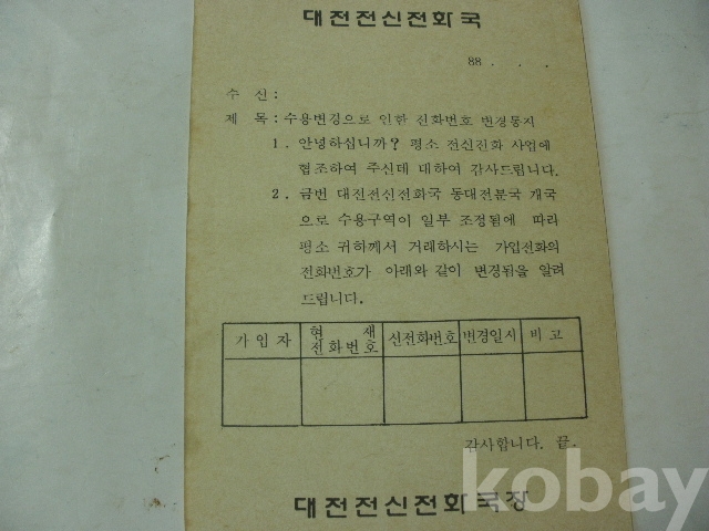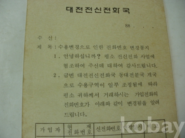 대전 전신전화국 - 동대전분국 개국으로 - 수용구역 일부 조정 알림 (1988년)