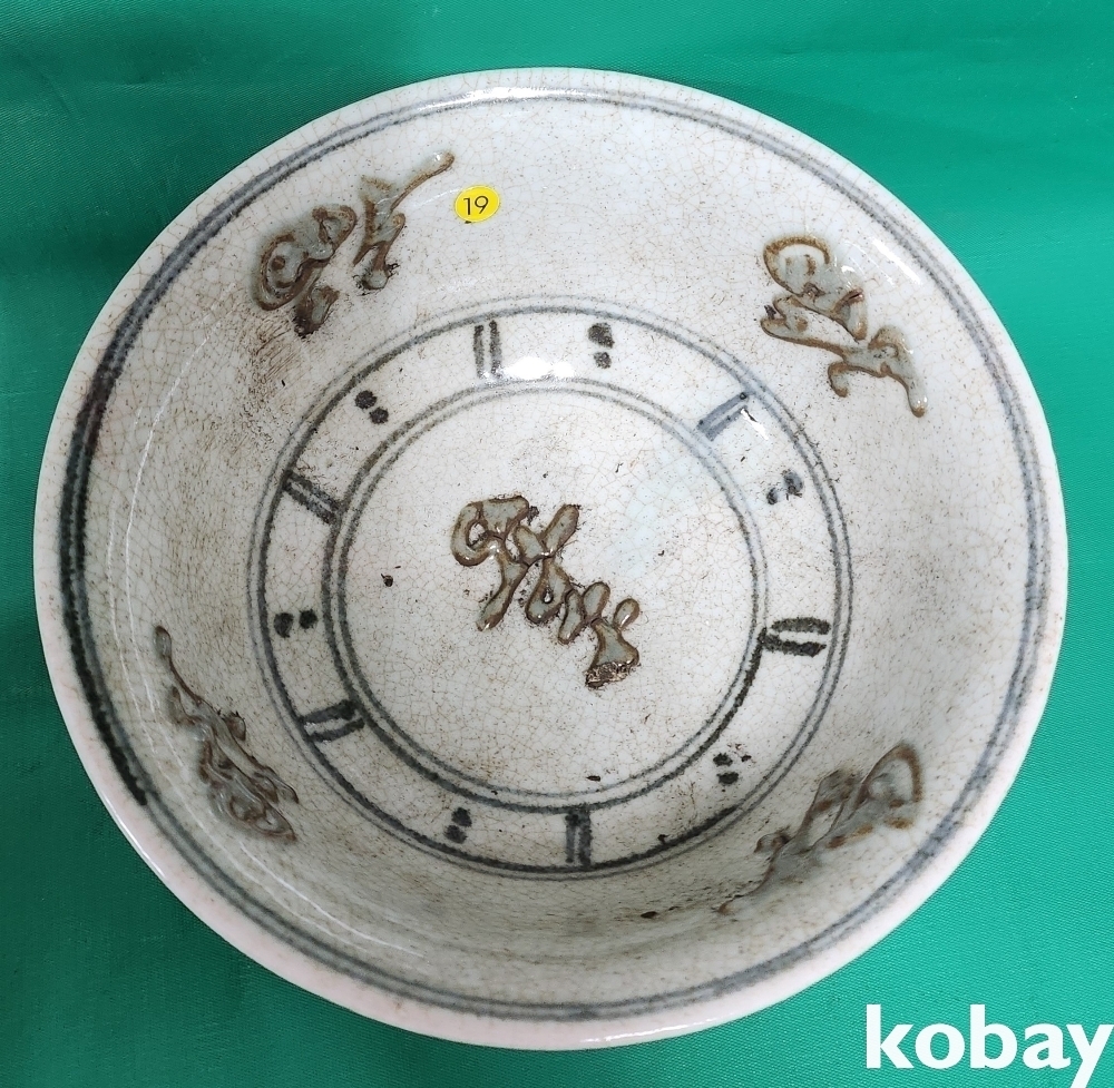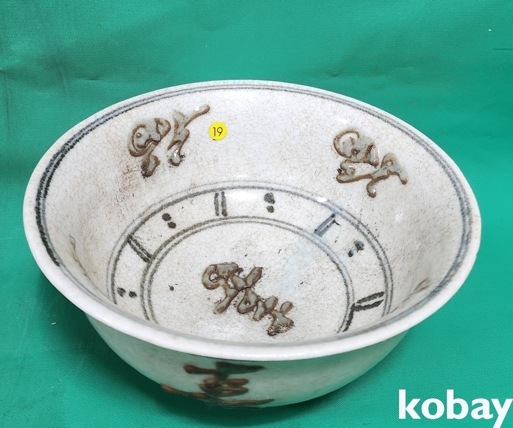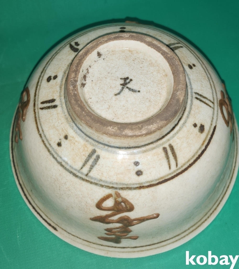 짱짱한 연대를 몸에 지닌 진사 뮨자(文字)문양 완(碗)입니다,