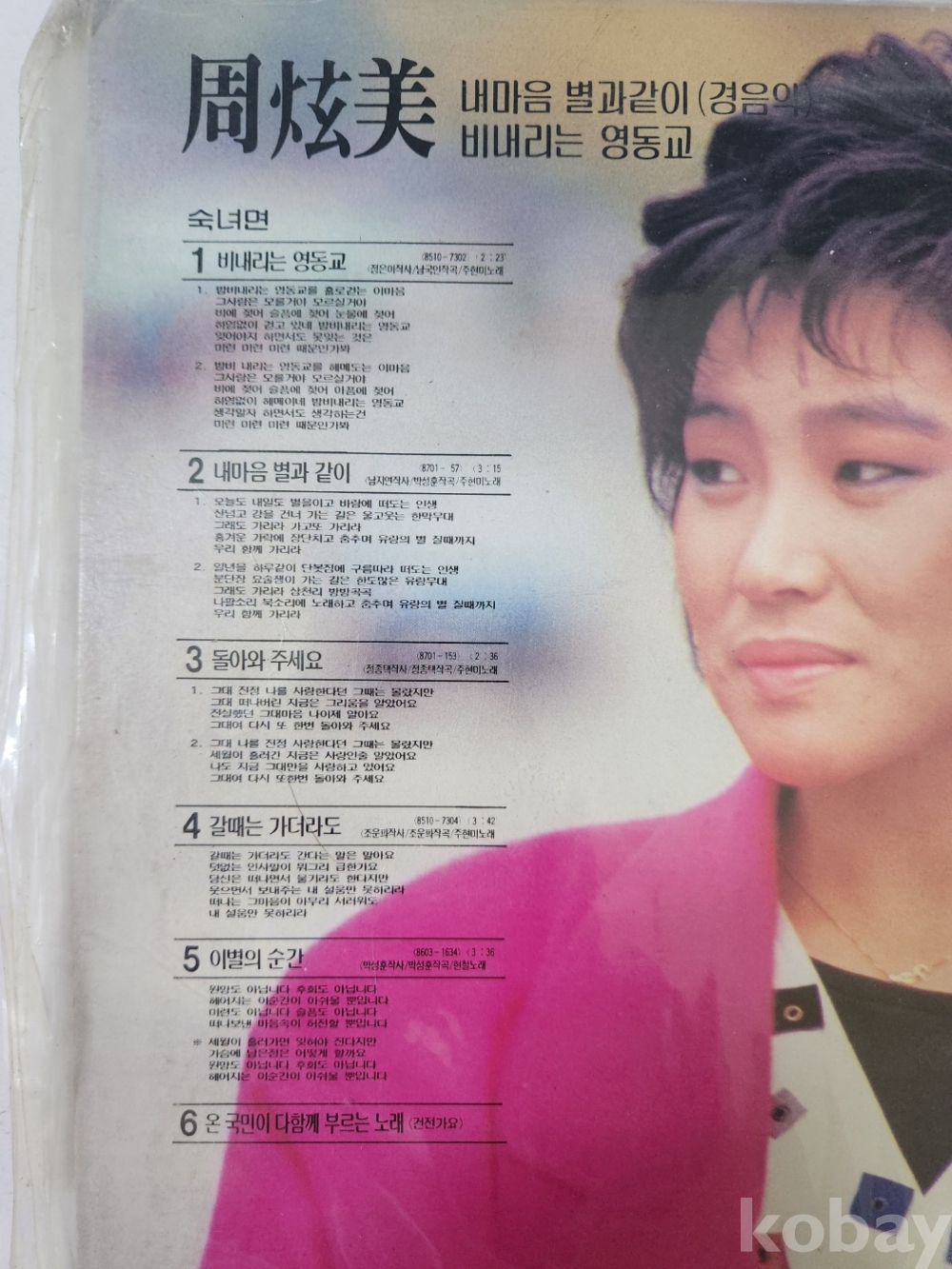 | 자켓상태 | EX : 약간의 마모, 모서리 찢김 존재 | 음반상태 | EX : 재생에 영향 없는 가벼운 기스 존재 | 발매정보 | 알수없음 | 가사지여부 | 무 |