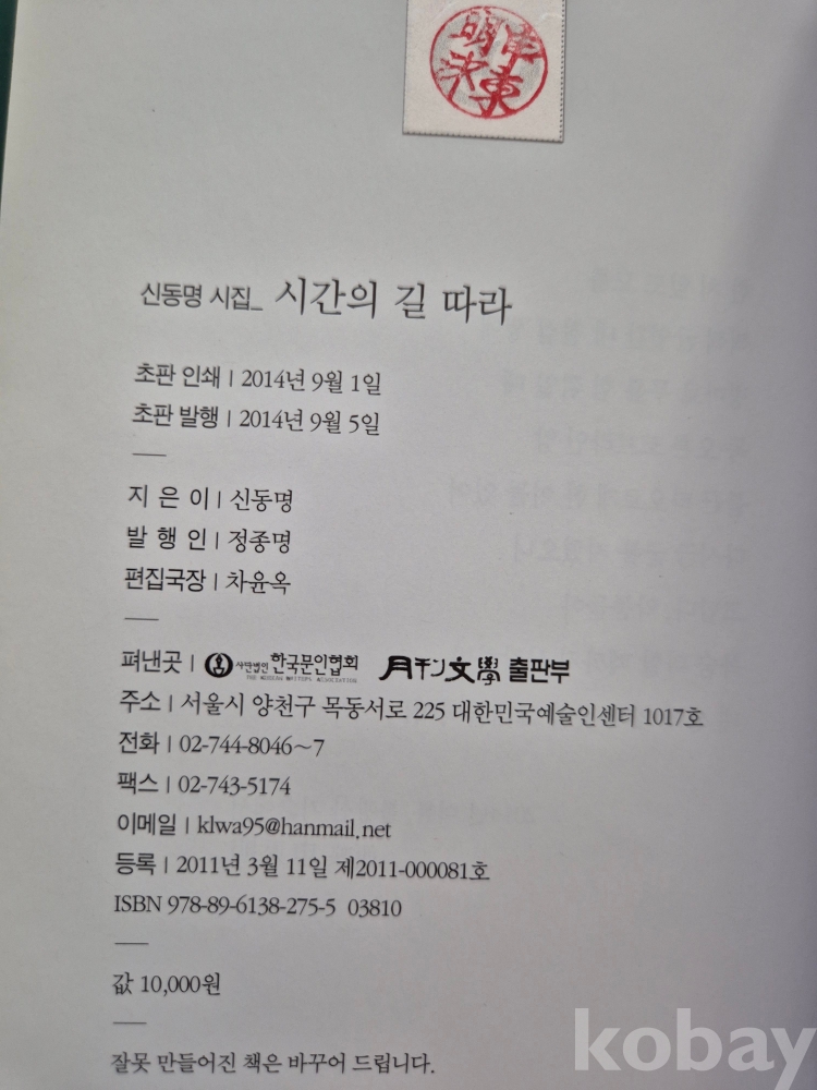 2014년 발간한 제5시집 『시간의 길 따라』