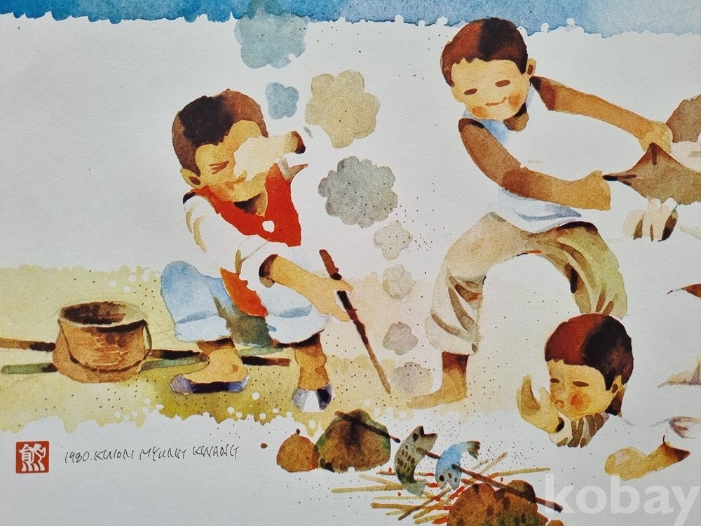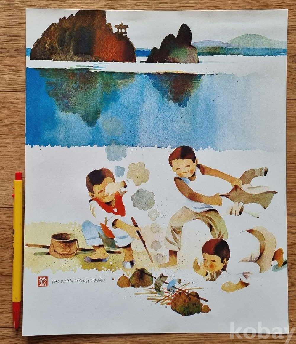 K-11 / 풍속화. 동화 그림삽화 (1979년 권명광 서명 낙관) 수채화풍 (인쇄본)