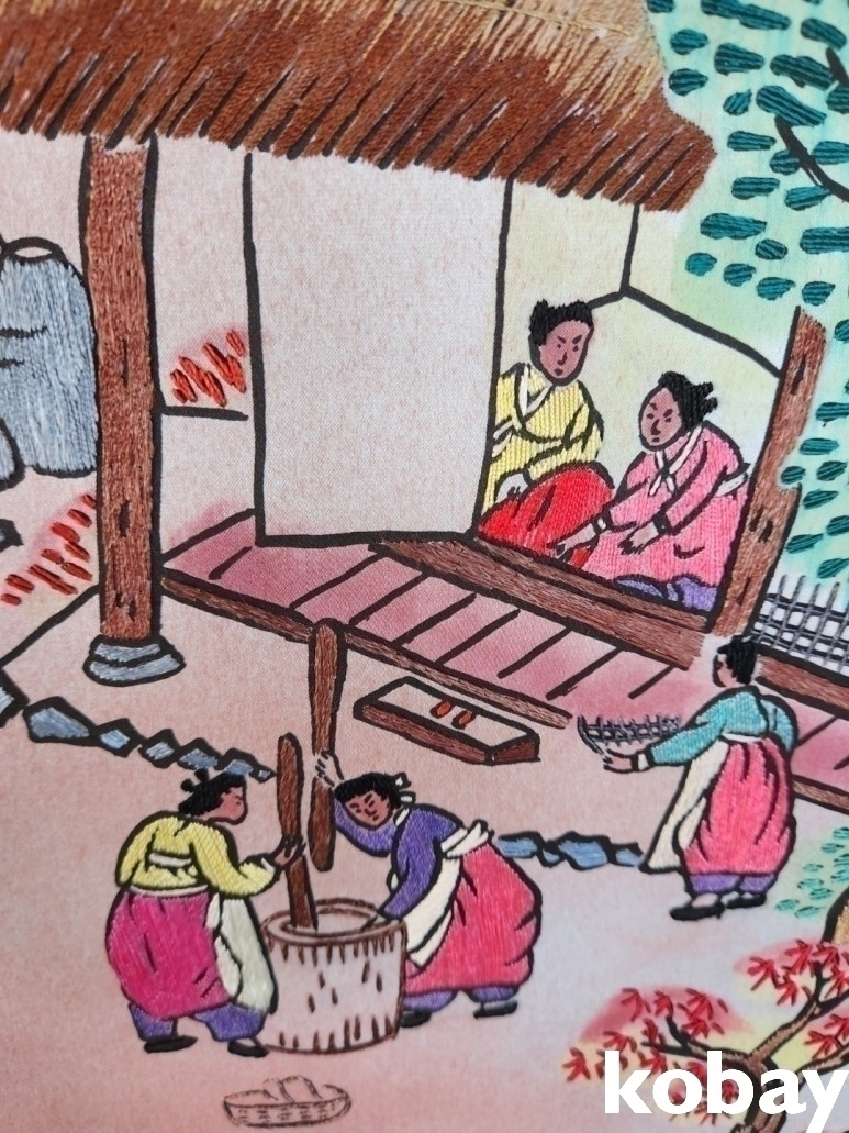 전통 풍속의 모습을 자수로 표현한 8폭 병풍 입니다.