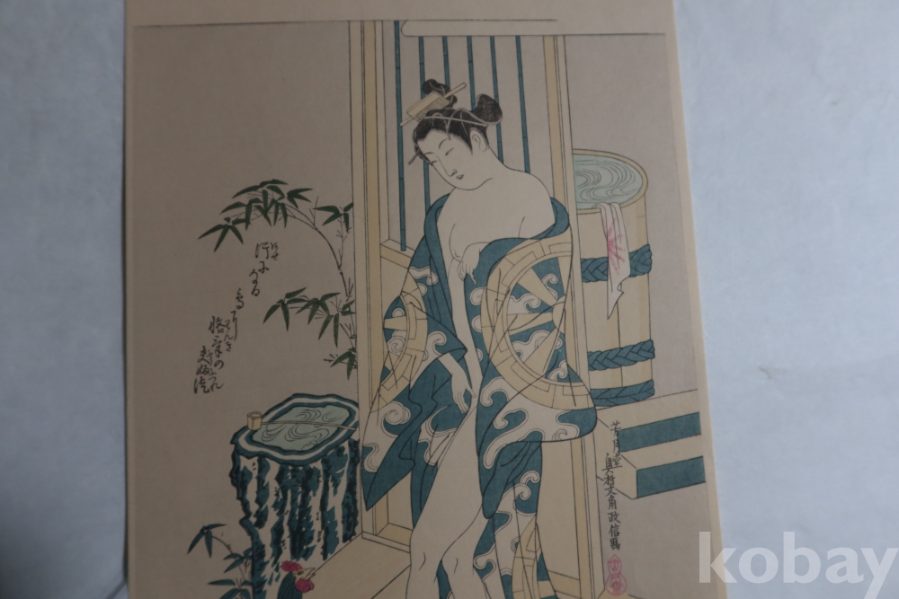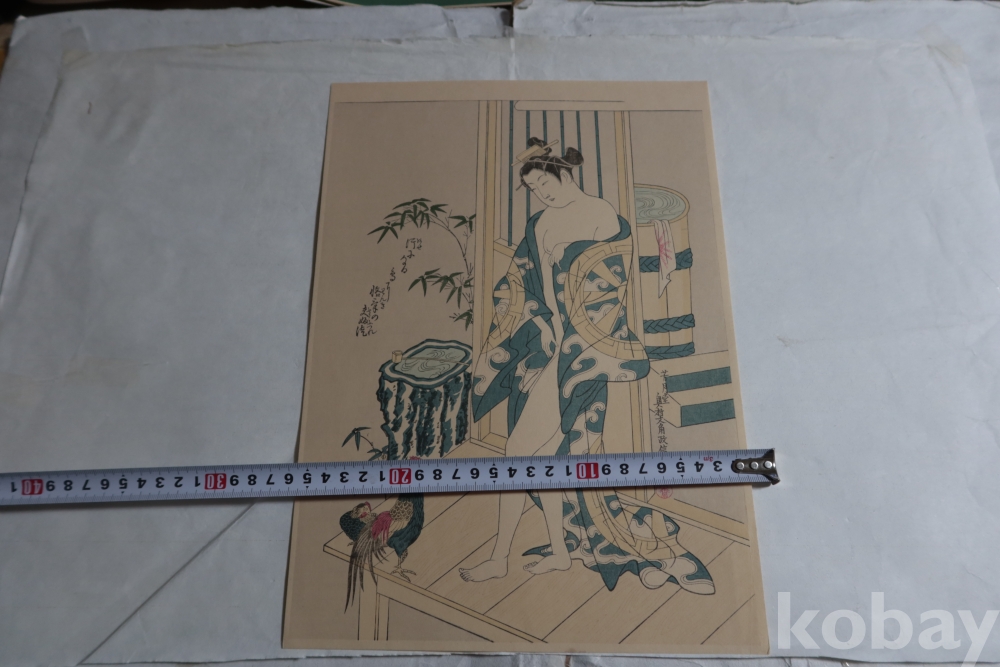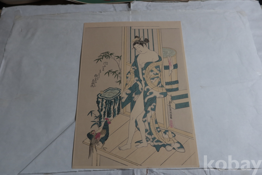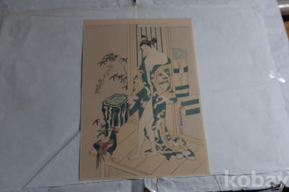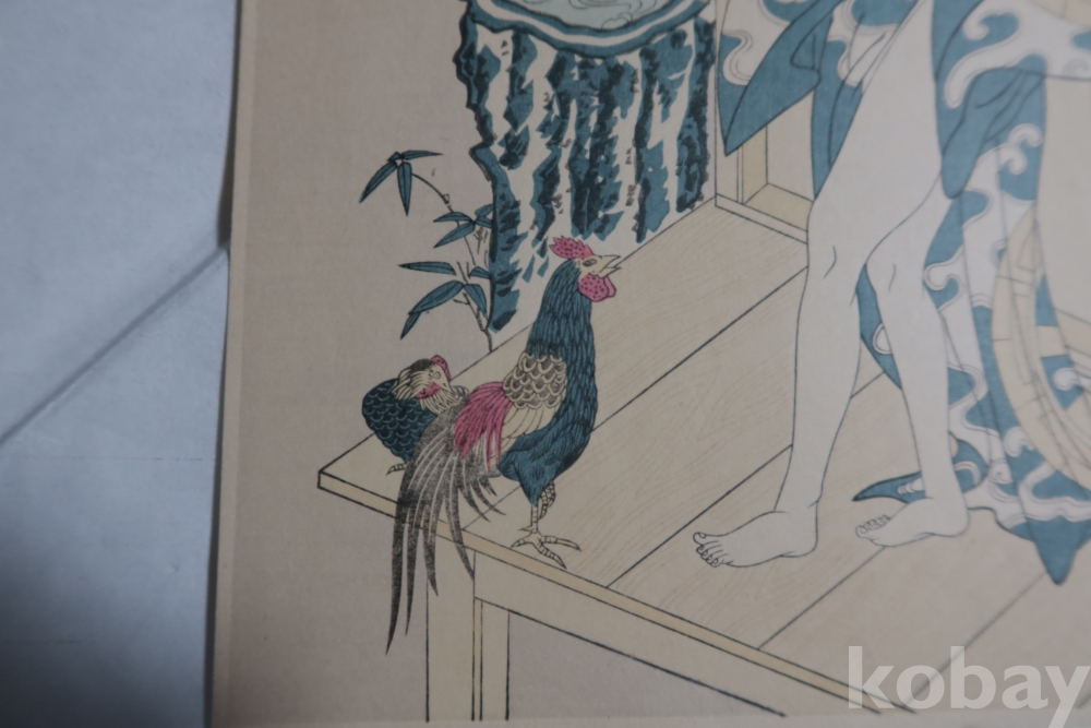 소화초기의 복각 목판화 임니다 마사노부의 명품 목판화 이며 재미난 소재를 가진 명작 임니다 글 내용이 시샘하는 암닭 이라고 함니다