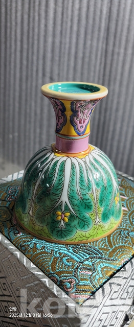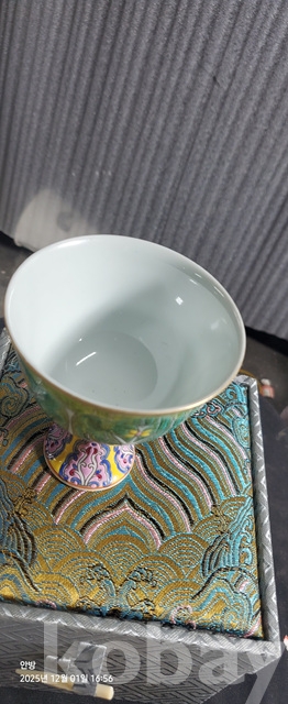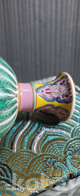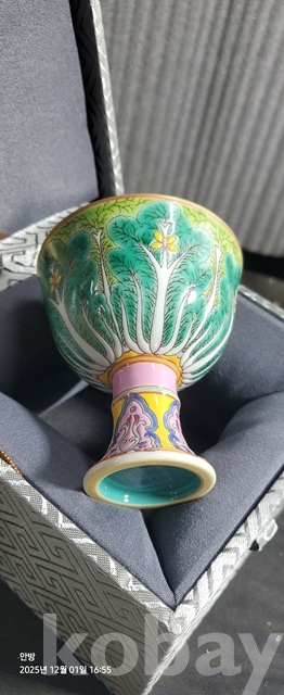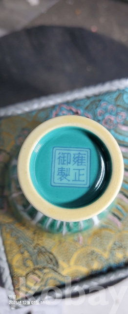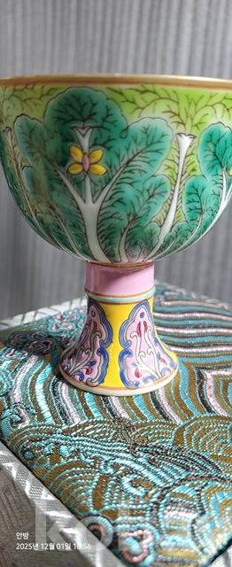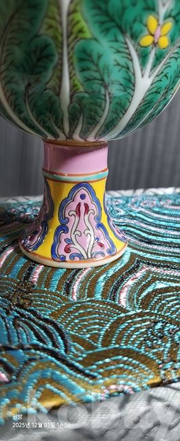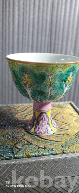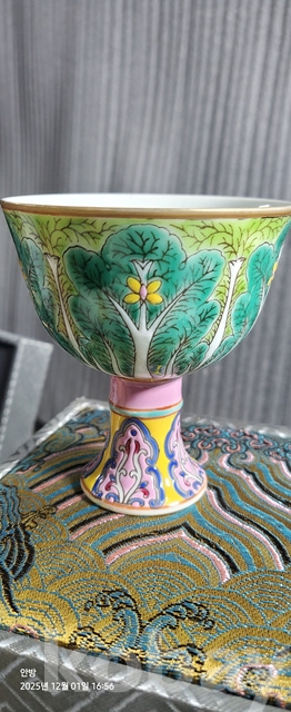 d-50.고급상장에든오래된 대청옹정년제 수공으로섬세하게그려린 배추문황실도자기 마상배