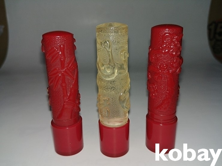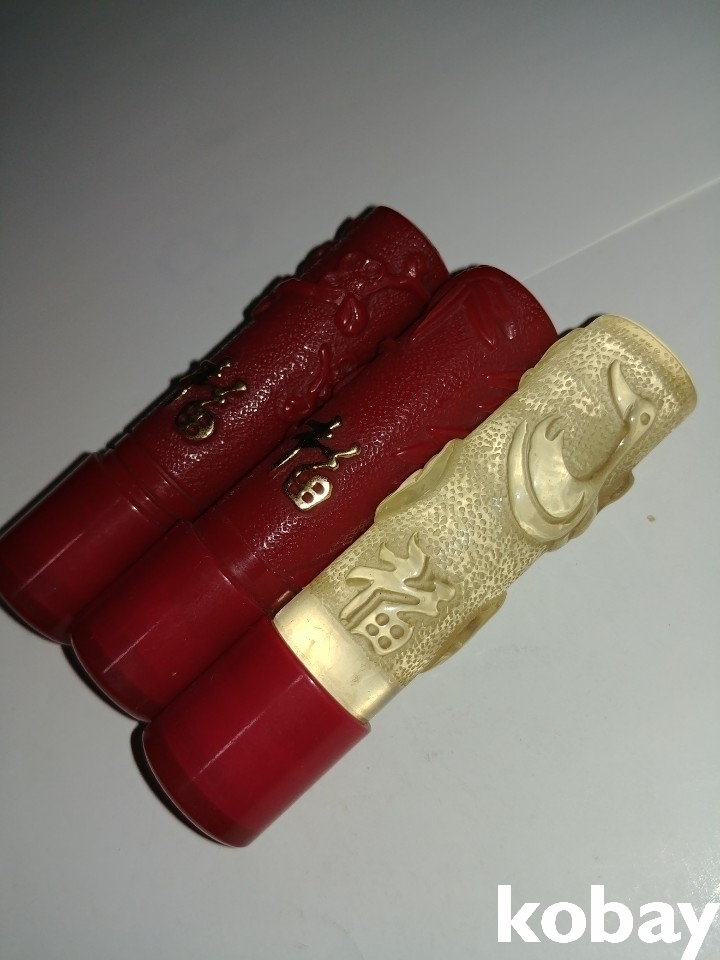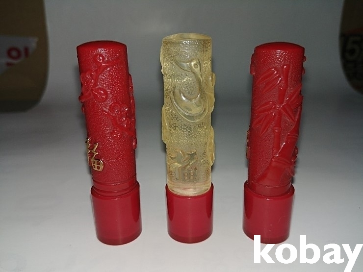 오리그림과 꽃그림이 각인되어 있으며 빨강은 사군자중 매화와 대나무 가 각인되어 있는 복 도장 입니다