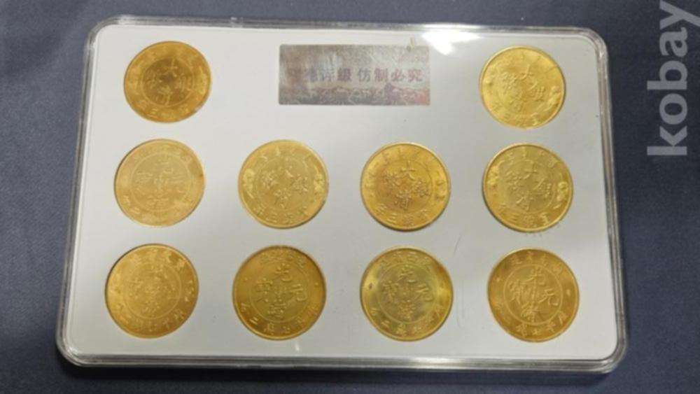 케이스 안에 들어있는 금색 주화 10점 입니다.
