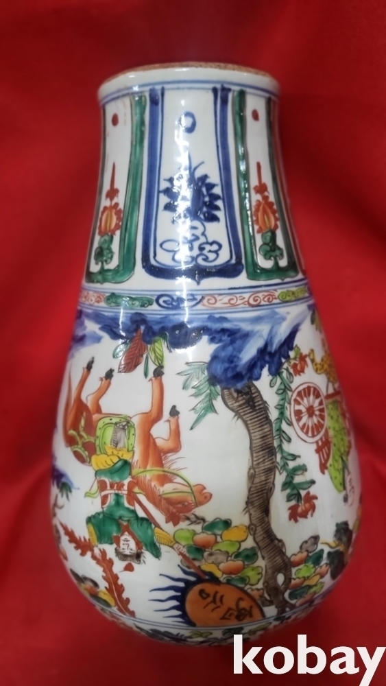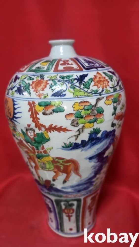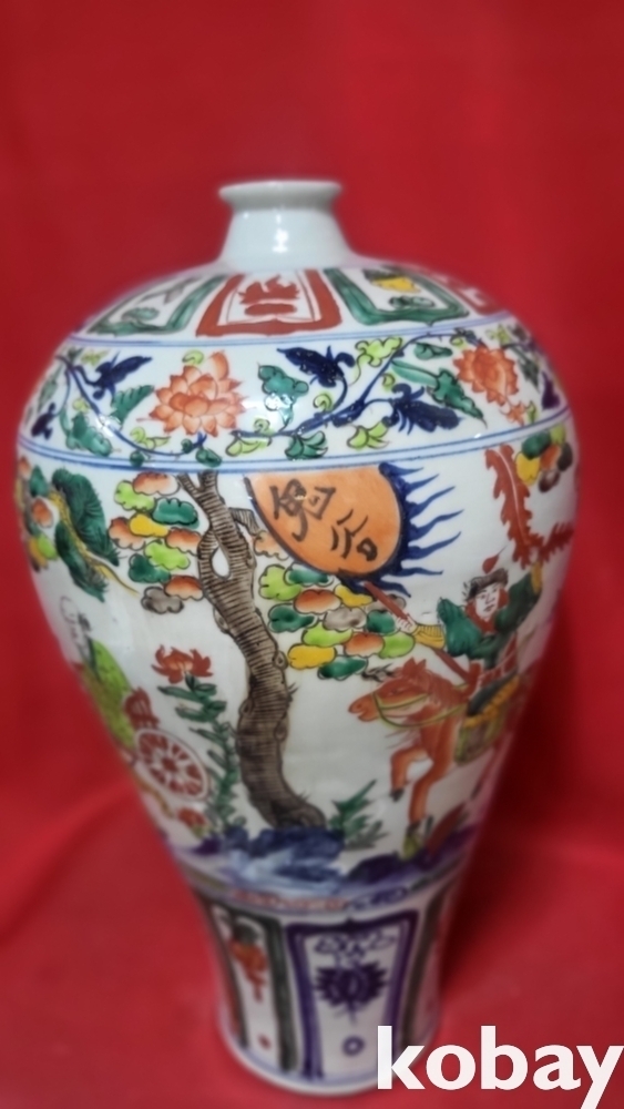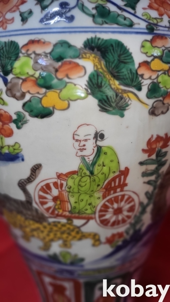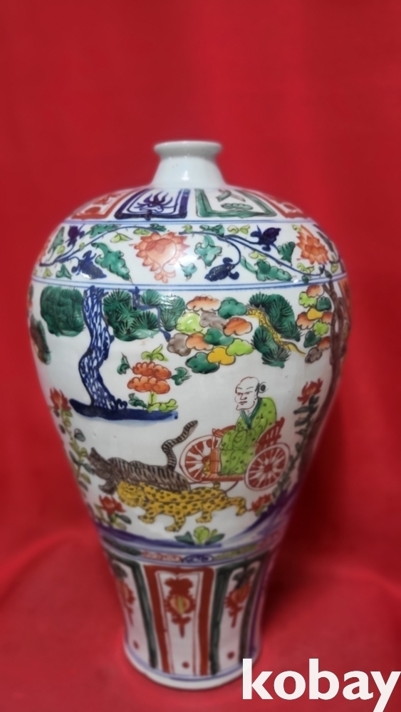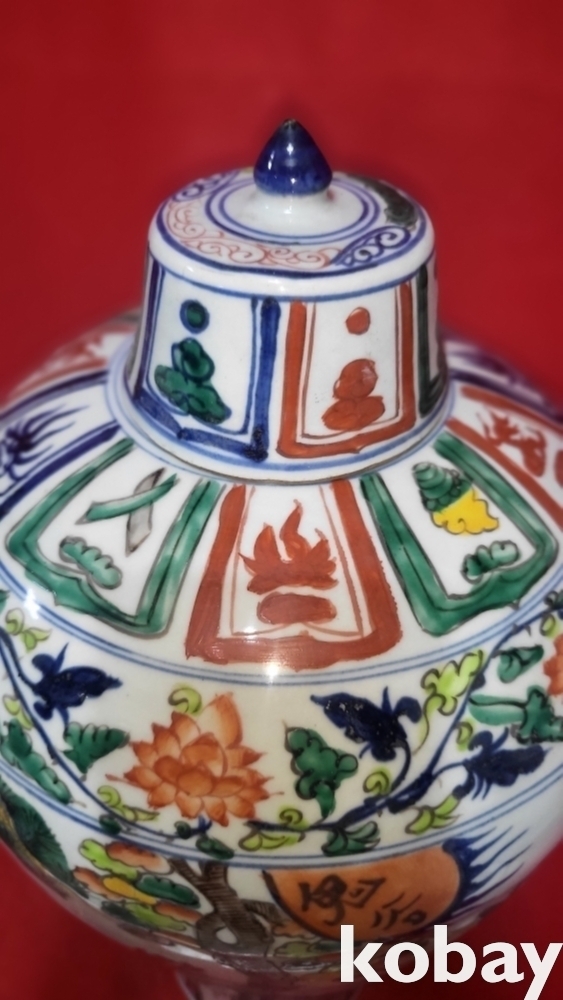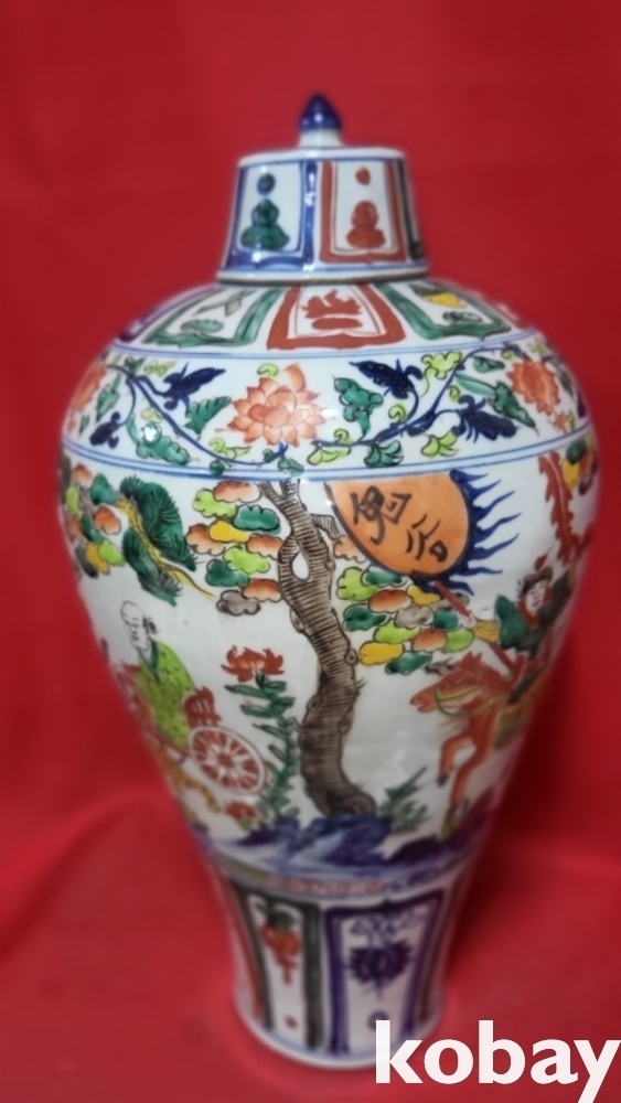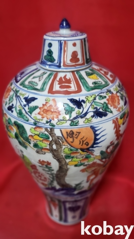 대원국 지정8년 추월길일 장문진 조 관지 청화유리홍 귀곡자하산도 문양 뚜껑있는 매병입니다,