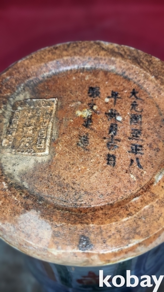 굽에는 대원국 지정8년 추월길일 장문진 조라는 관지가 보임니다,