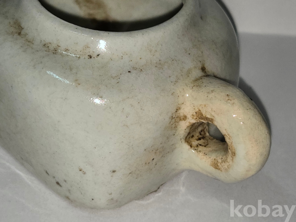 연대가 배어있는 백자 도자기 사각등잔으로 형태바르며