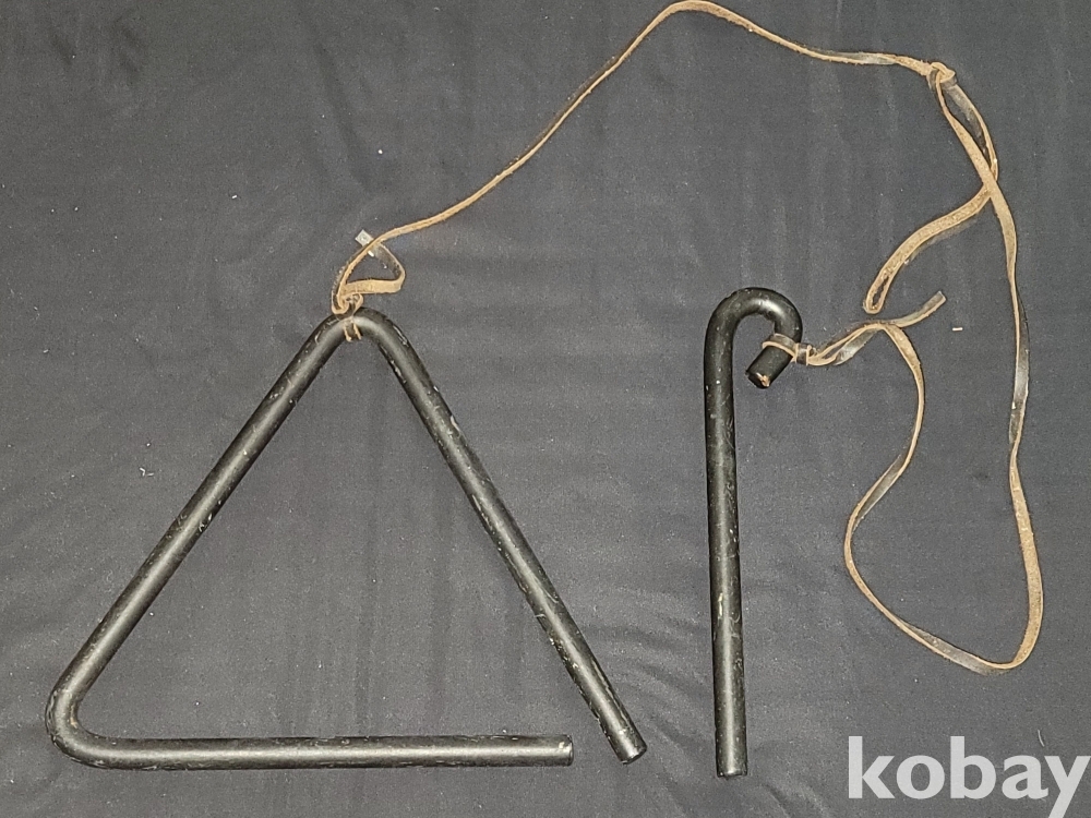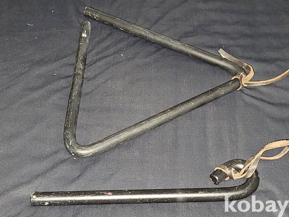 빈티지 세월 감이 느껴지는 옛날 학교에서 종처럼 사용하던 꽤 묵직한 빈티지 트라이앵글입니다.