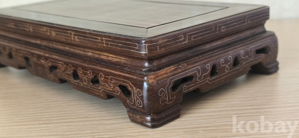 @. 단단한 괴목으로 만든 받침대에 은상감 으로 멋을낸 골동급.