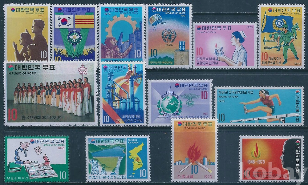 (한국우표-142)1973년기념우표14종(미사용제)-MNH, VF