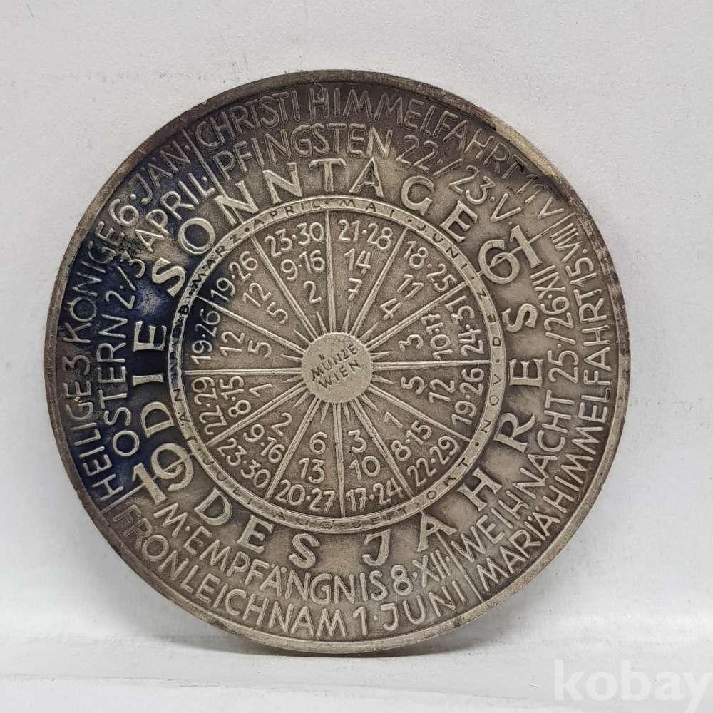 - 1961년 오스트리아 40mm 태양신 헬리오스 캘린더 메달