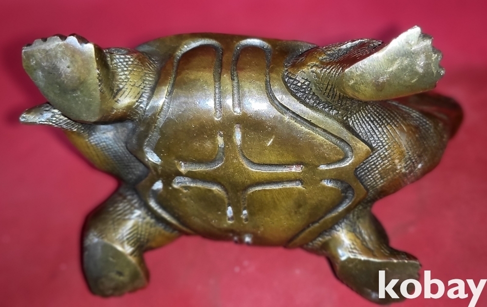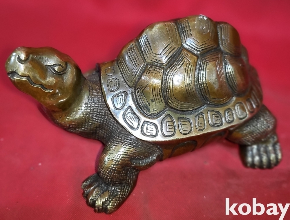 청동으로 만든 장수의 상징 거북이 문양 조각품입니다,