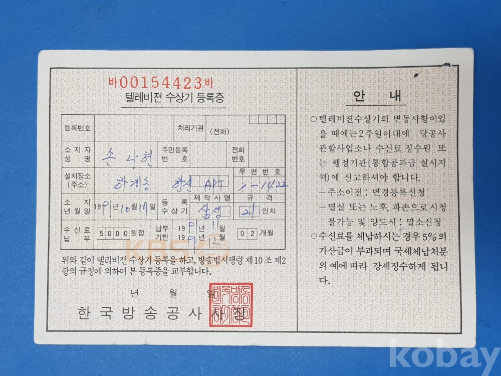 **** 텔레비젼 수상기 등록증/한국방송공사