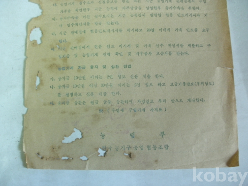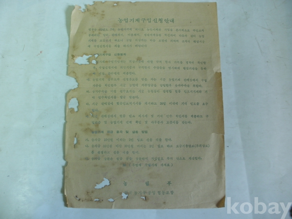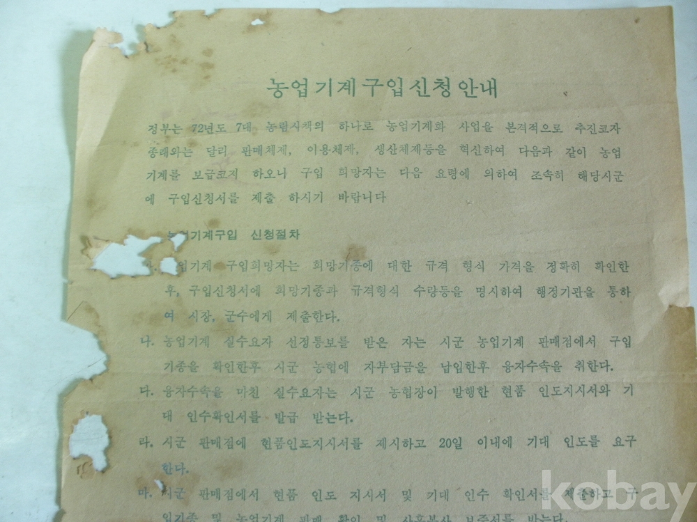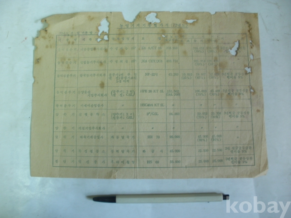 농업기계 구입 신청안내 - (뒷면) 농업기계 기종 및 가격 (1972년, 농림부)