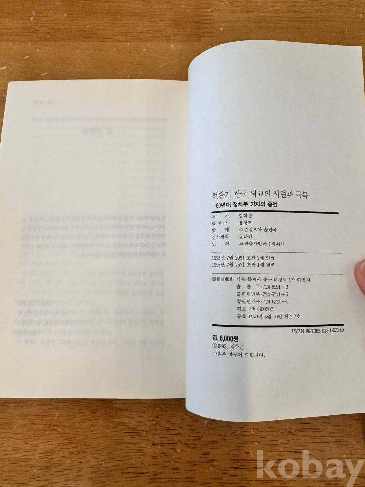 [한국현대사] 김학준, <전환기 한국 외교의 시련과 극복>, 조선일보사, 1993, p. 365, 상태 중급(사진참조)