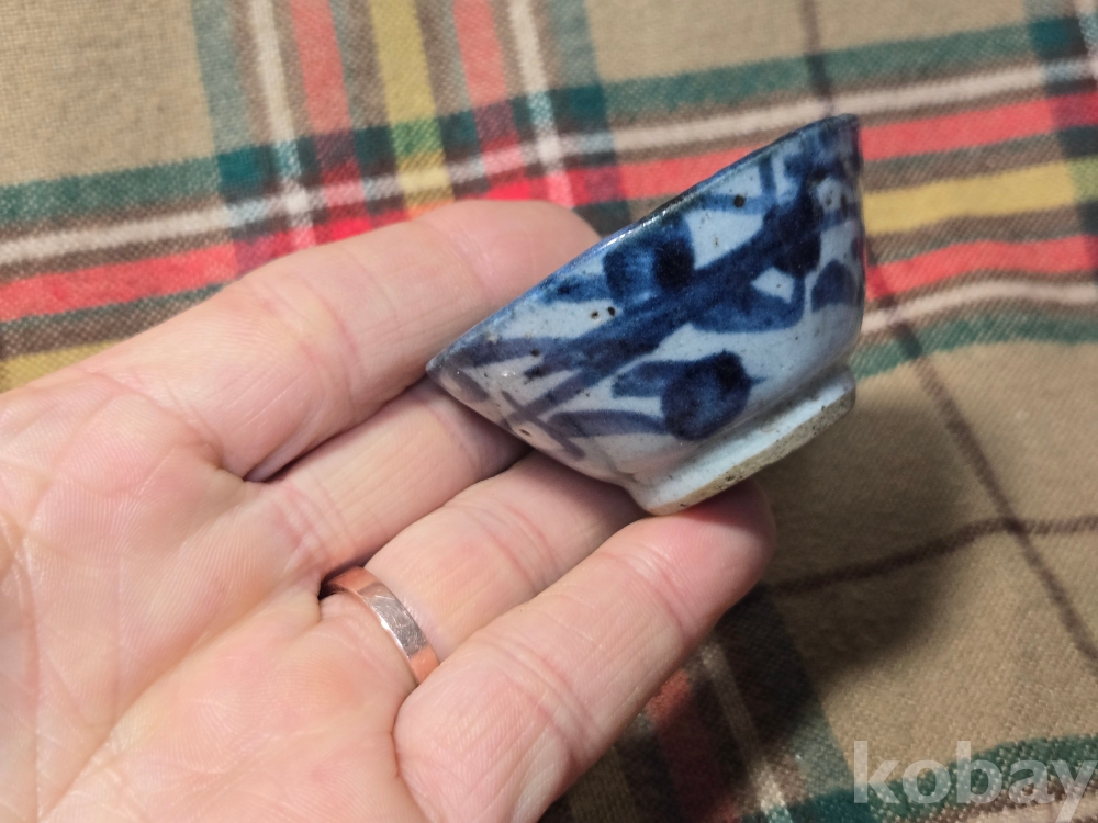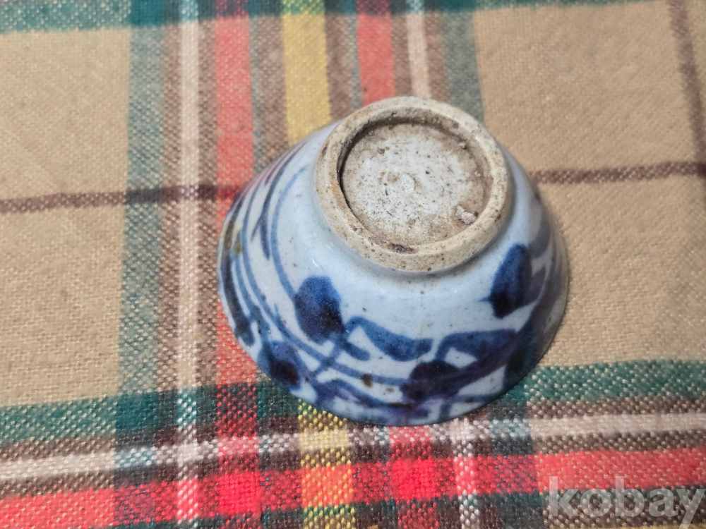 <투킴스> 공부차 - 중국 골동 찻잔, 술잔 - 고청화 화문 미니잔 #1 -유,튐있음