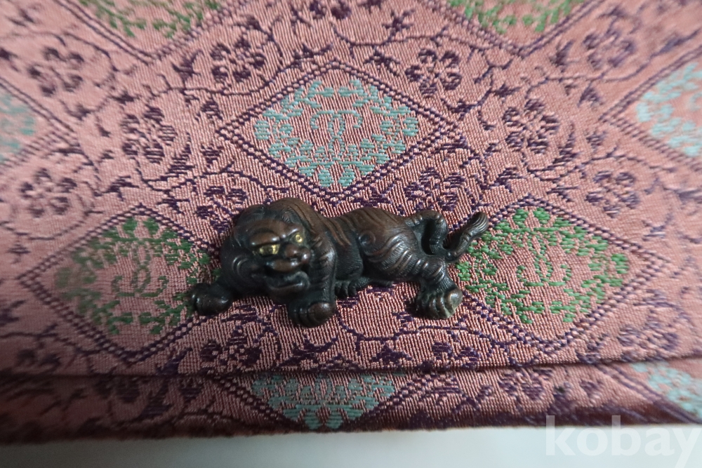 귀한 호랑이 장식을 가진 지갑 임니다 장식은 19세기 고미술 이며 지갑은 현대 이며 호랑이의 섬세 정교 다이나믹한 명물 임니다 일본 공예의 정수
