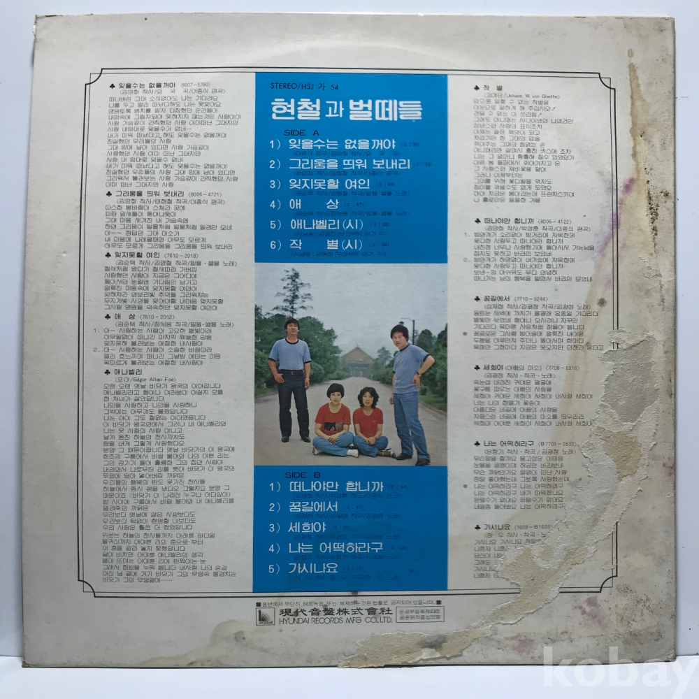 | 자켓상태 | VG : 주름, 접힘, 모서리 찢김 다수 | 음반상태 | EX : 재생에 영향 없는 가벼운 기스 존재 | 발매정보 | 알수없음 | 가사지여부 | 무 |