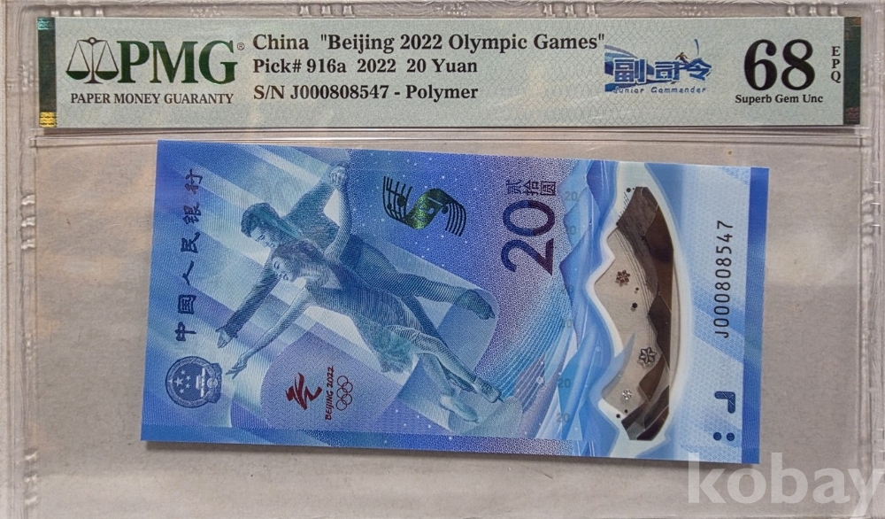 -2022년 중국 동계올림픽 기념 지폐 PMG68 고등급 입니다.