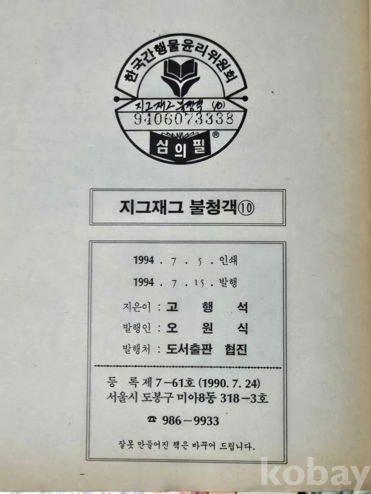 고행석 극화 만화 시리즈 == 지그재그 불청객 10권 완결 =