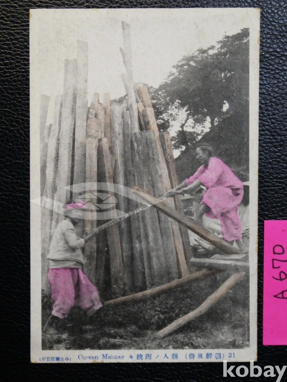 ▣근대한국엽서(진본): [조선풍속] 조선인 목수가 톱질하는 모습/1매.
