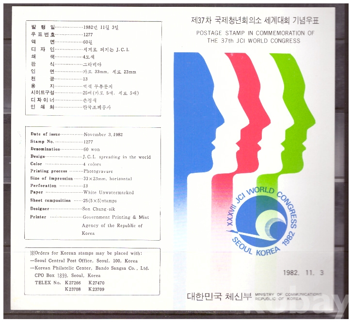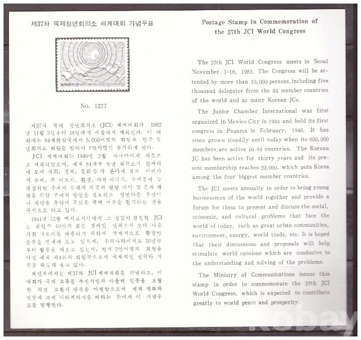 (안내카드) 1982.11.3 제37차 국제청년회의소 세계대회 (접지않음)