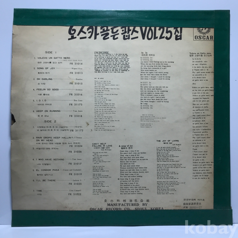 LP 83,740-47 오스카 골든팝스 25집 - 검은 고양이를 갖고 싶어 . 자켓 VG 알판 EX 국내반