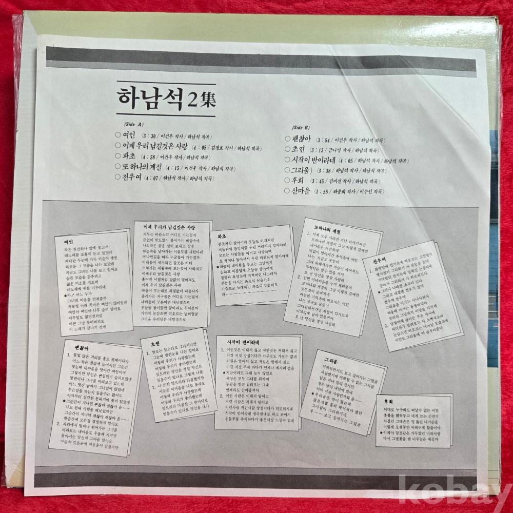 | 자켓상태 | EX : 약간의 마모, 모서리 찢김 존재 | 음반상태 | EX : 재생에 영향 없는 가벼운 기스 존재 | 발매정보 | 초반 | 가사지여부 | 유 |