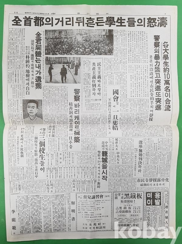 ▶동아일보 창간호(손기정 마라톤우승,4.19의거/동아일보 주요기사를 수록한 영인본)/40*55cm