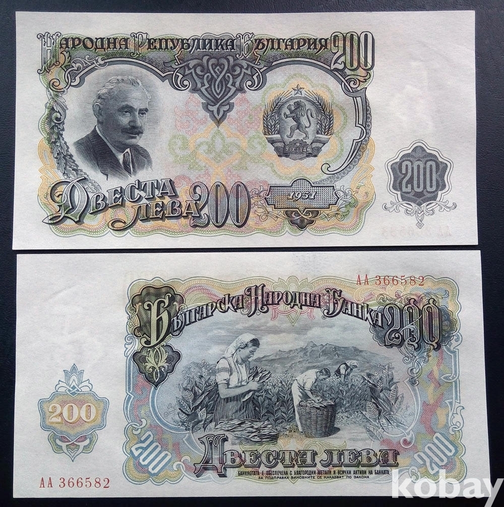 초대형 지폐 불가리아 200 레프 Leba 1951 년