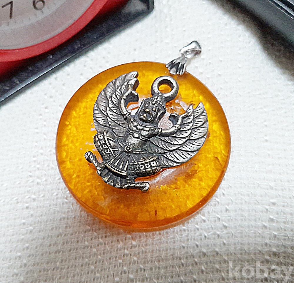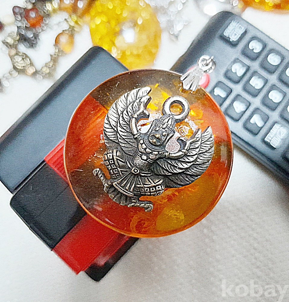앤틱 실버 불상조각 호박 펜던트