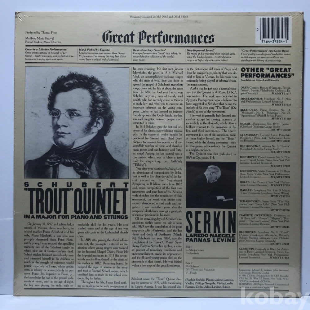미개봉 LP 22,447-34 Schubert - Trout Quintet in a Major For Piono And Strings- Serkin 자켓 SS 알판 SS 81 년 국내반