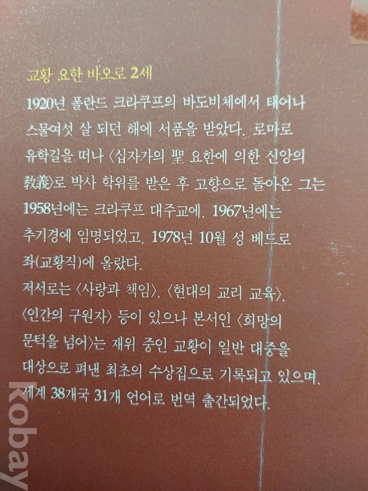* 희망의 문텩을 넘어 - 교황 요한 바오르 2세 수상집