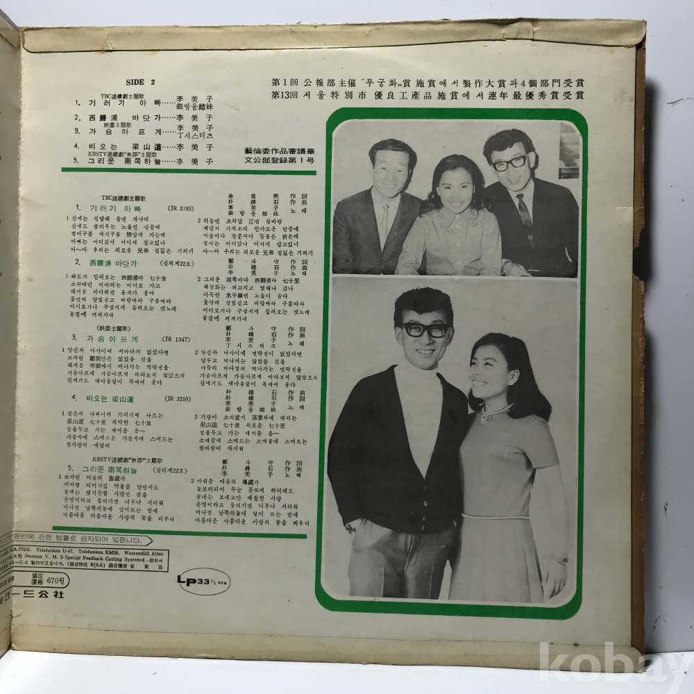 | 자켓상태 | VG : 주름, 접힘, 모서리 찢김 다수 | 음반상태 | EX : 재생에 영향 없는 가벼운 기스 존재 | 발매정보 | 알수없음 | 가사지여부 | 무 |