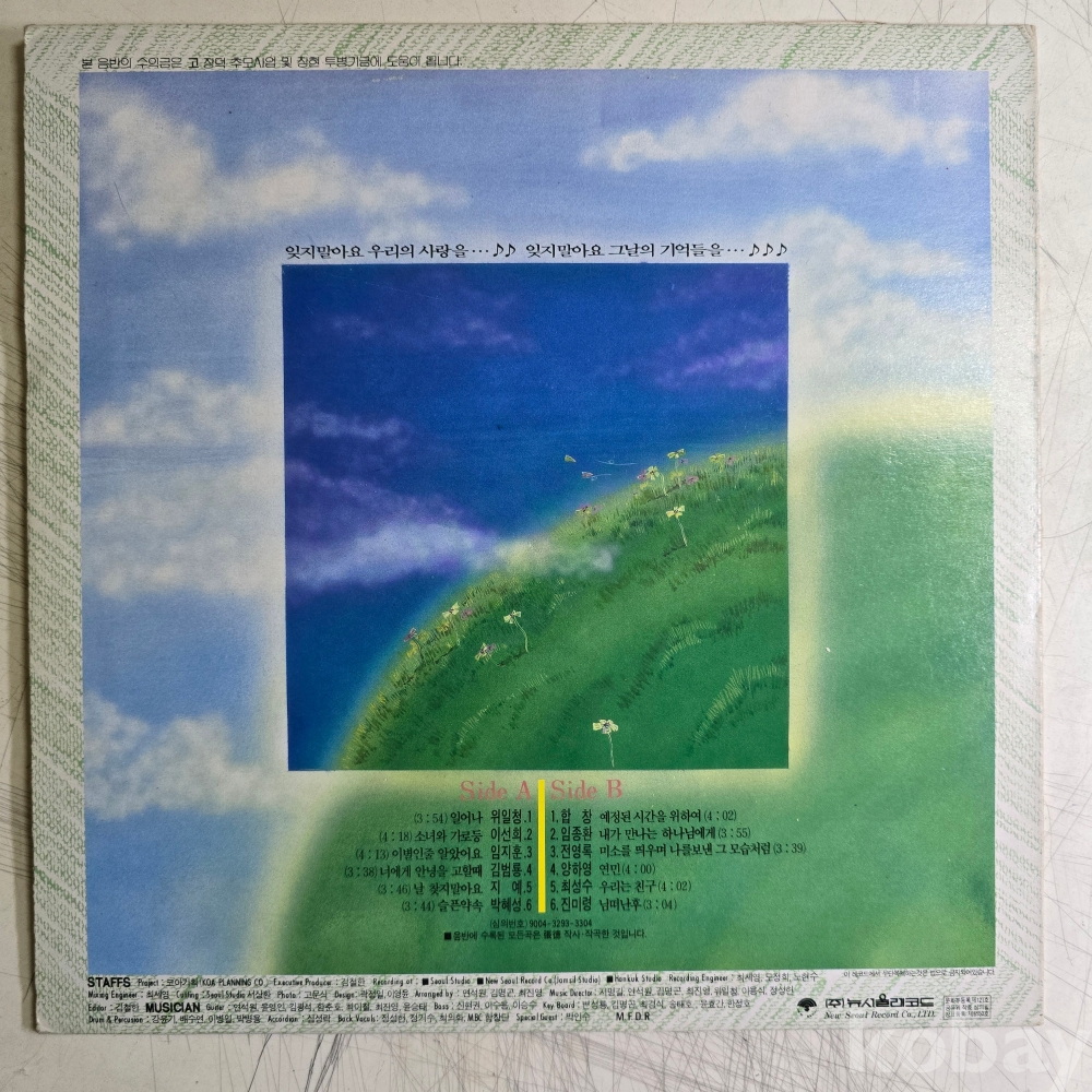 | 자켓상태 | VG : 주름, 접힘, 모서리 찢김 다수 | 음반상태 | VG : 생활 기스 다수, 가벼운 노이즈 존재 | 발매정보 | 초반 | 가사지여부 | 유 |