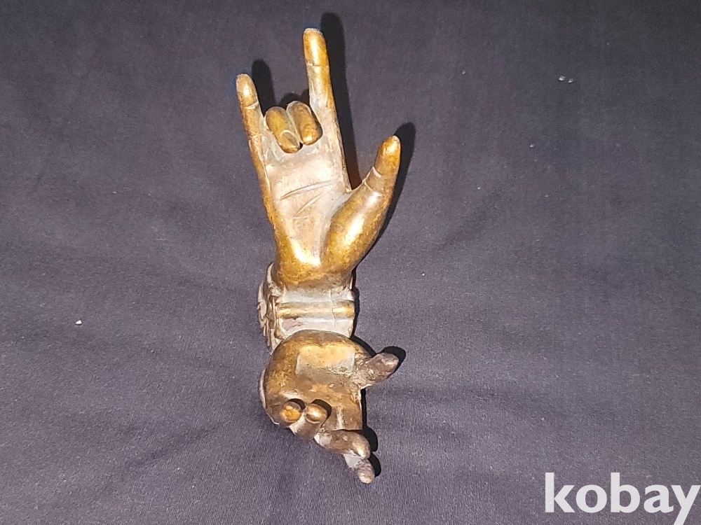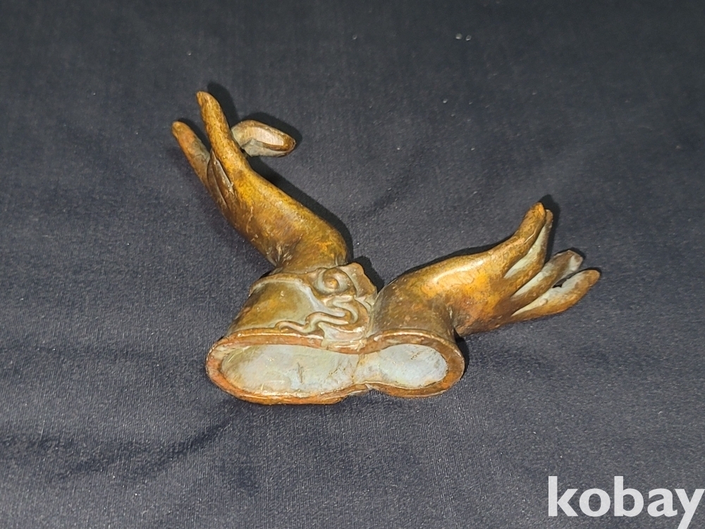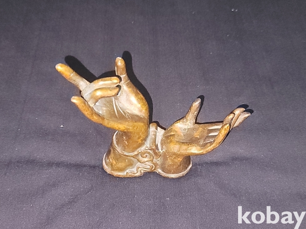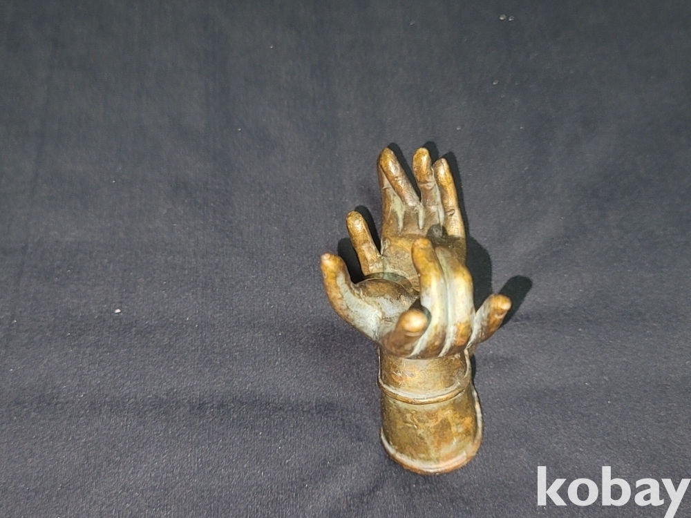 빈티지 세월 감이 느껴지는 손 모양 적동 장식입니다.