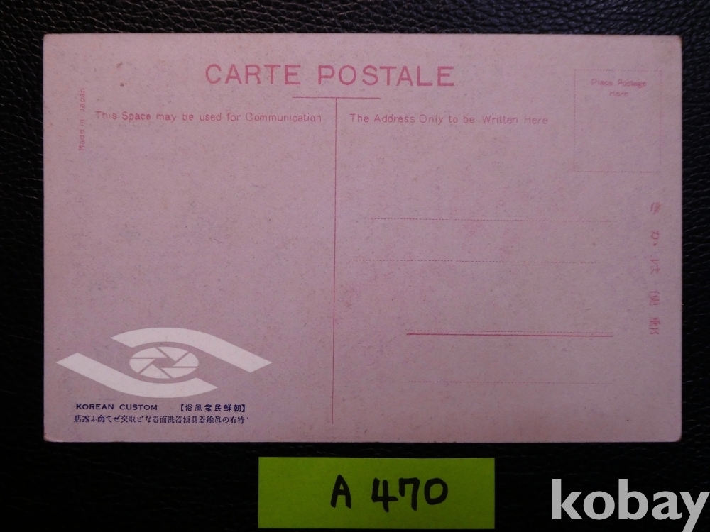 ▣근대한국엽서(진본): [조선풍속] 조선민중풍속: 요강 파는 갓쓴 노점상의 모습/1매/역사자료/일제강점기 사진엽서, 그림엽서, 회엽서. A470