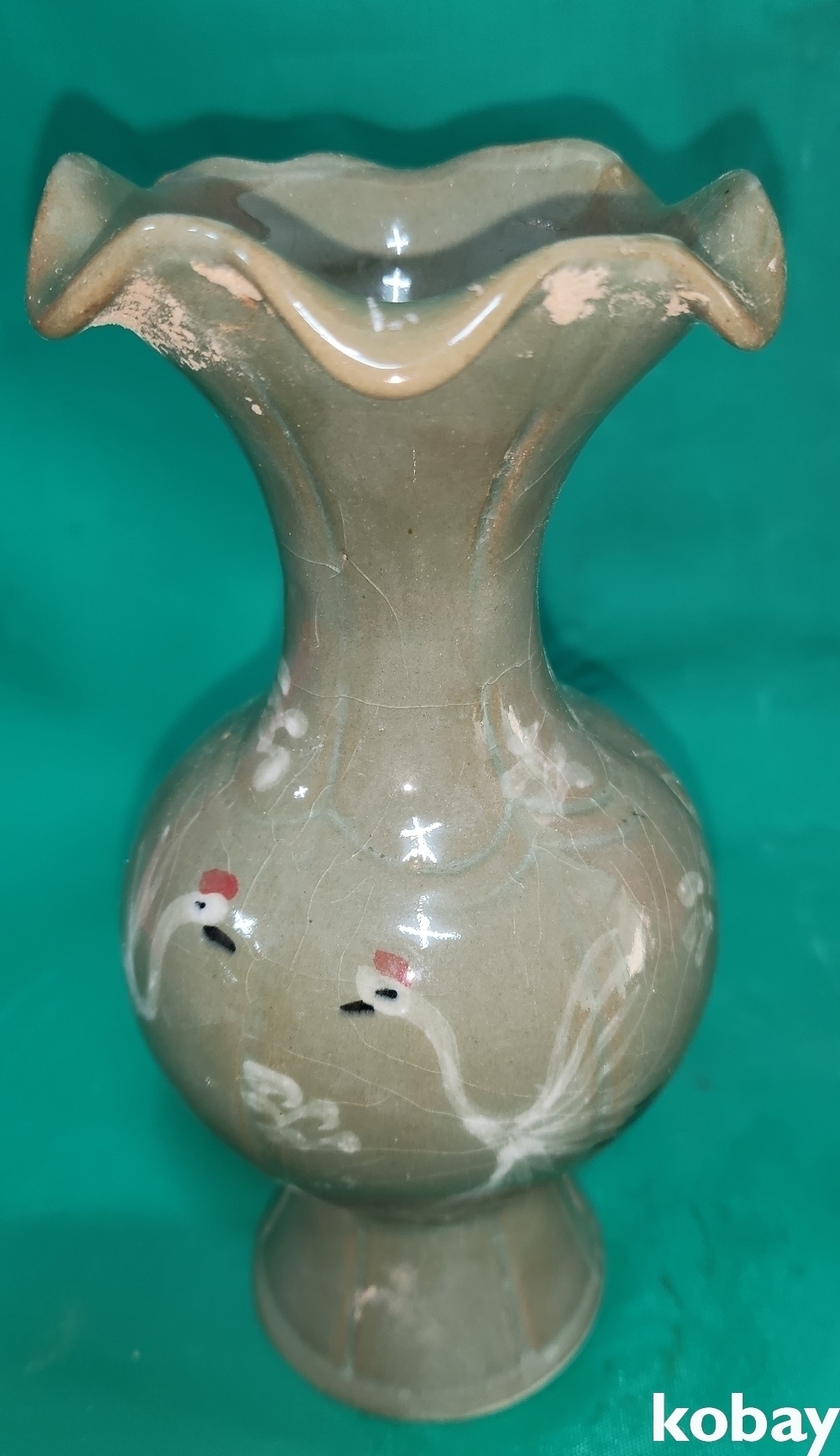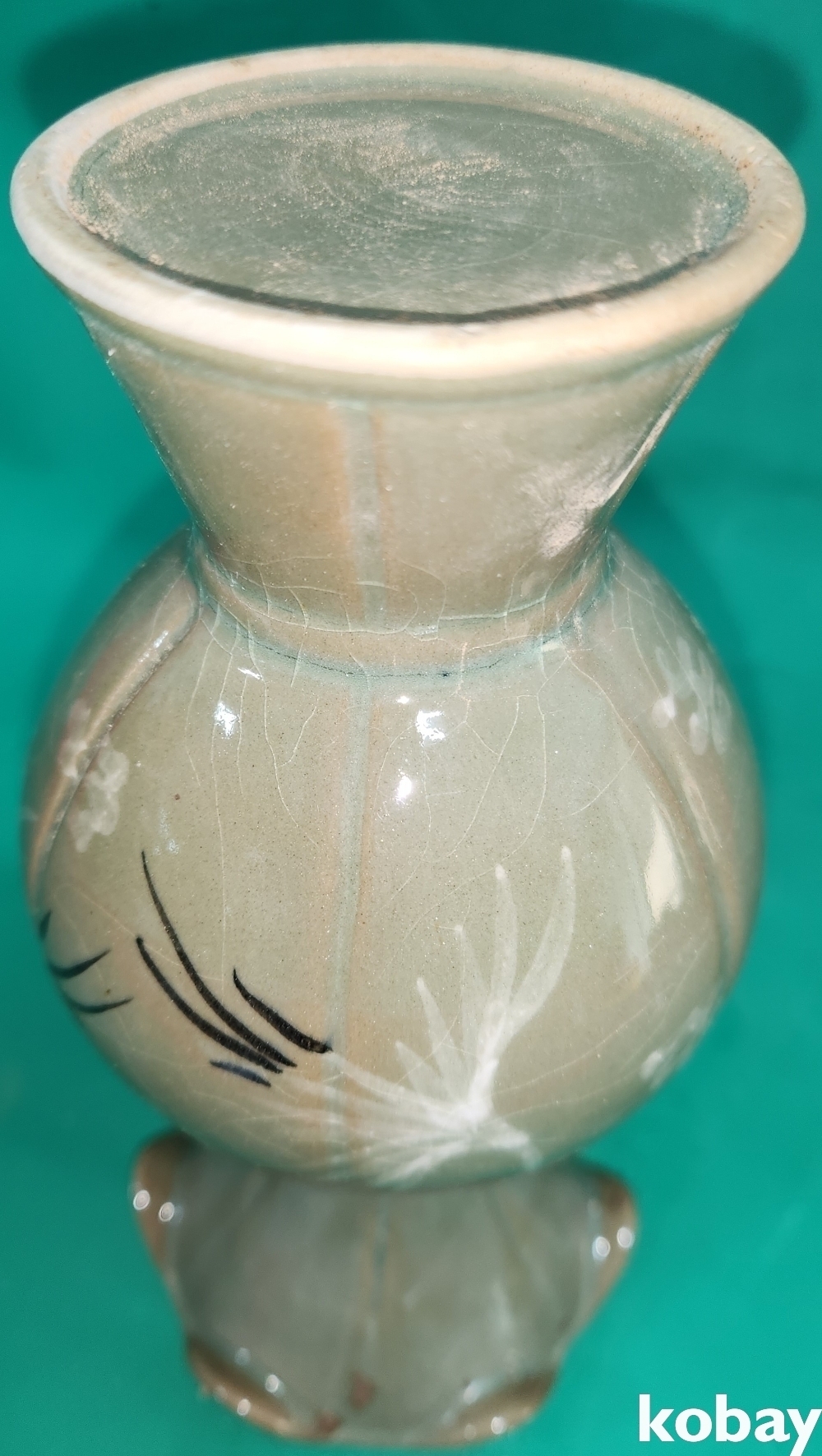 흑백 상감 청자 운학(雲鶴)문 화형 호리병입니다,