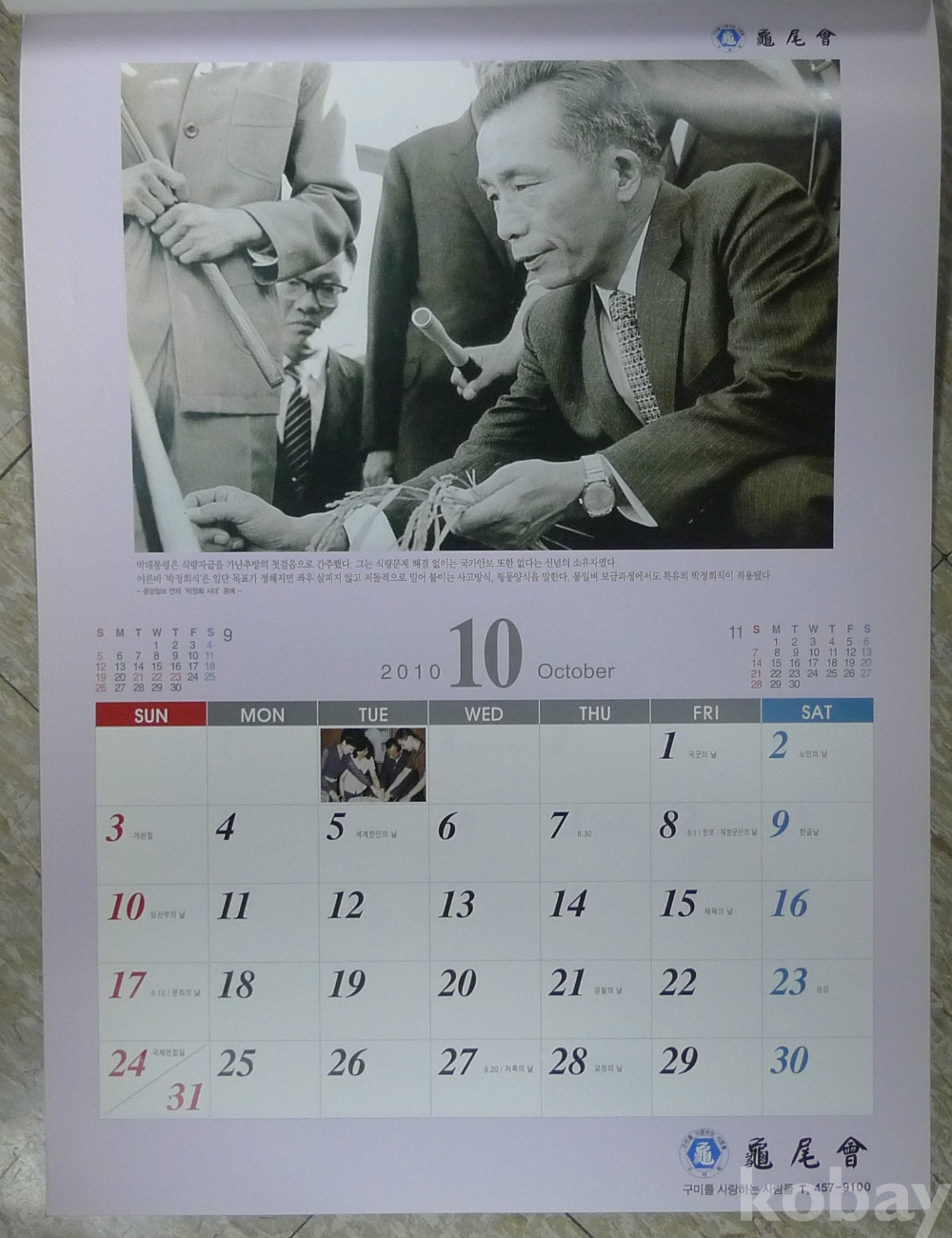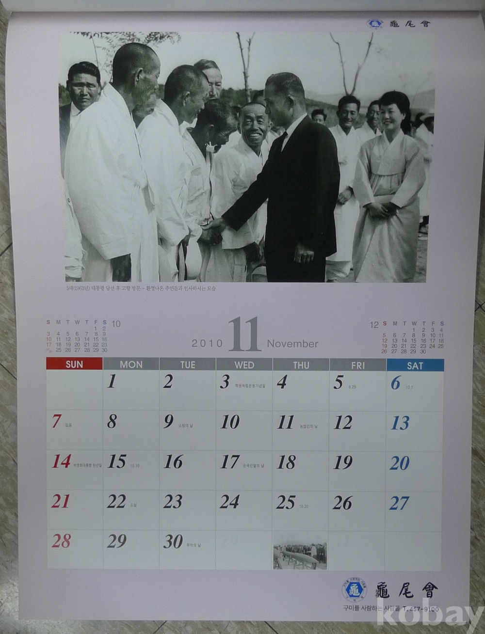2010년 박정희 대통령 구미회 벽걸이 달력