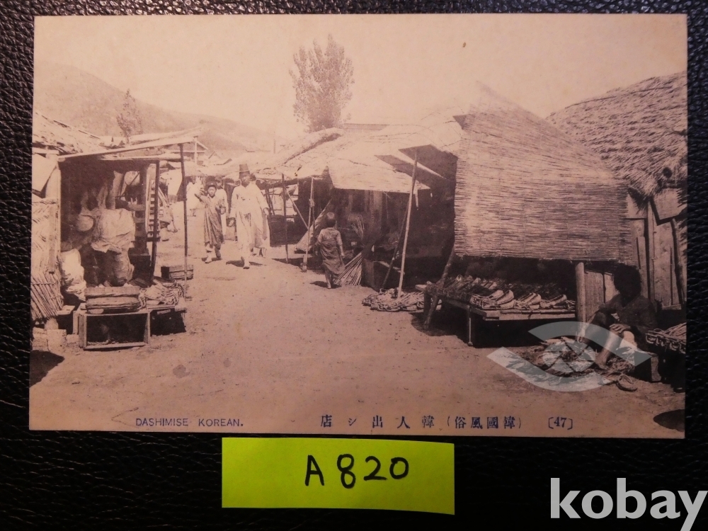 ▣근대한국엽서(진본): 대한제국기, 한국인의 거리 상점, 한국풍속, 1910년 이전 엽서, 신발가게, 짚신, 전통시장/1매/조선풍속/일제강점기 사진엽서, 그림엽서, 회엽서. A820